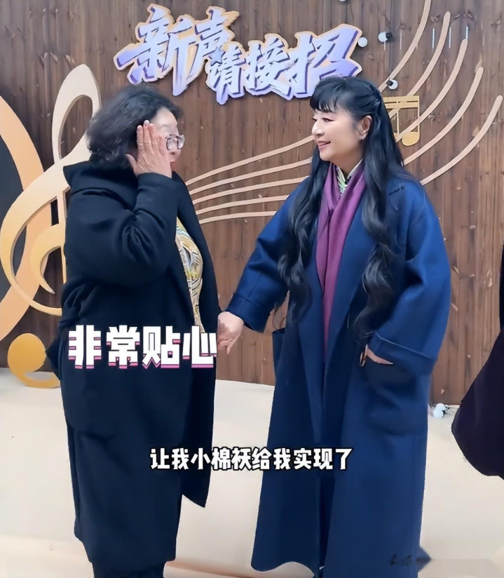 当天,海涛妈妈第一眼见到秀梅老师真人时,整个人瞬间呆住了,嘴巴张得老大,眼神里满是难以置信,看着看着,眼泪便不由自主地流了下来。原来,秀梅老师是海涛妈妈年轻时的偶像,那些陪伴她走过青春岁月的歌声,都来自秀梅老师。她还在现场真诚地说道,感谢自己的 “小棉袄” 沈梦辰,帮她圆了多年的追星梦。随后,海涛妈妈还现场哼唱了两句秀梅老师的歌,浓重的东北口音,让这段哼唱多了几分趣味,十分好记。
